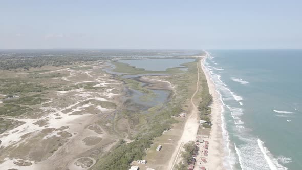 Aerial shots from Aldama Tamaulipas, show the beaches of the barra del tordo. Sunny day and calm waves of an empty beach