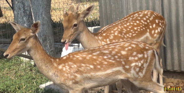 3 full hd video clips of two deer in a farm.