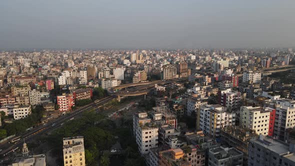 Aerial push in shot. Dhaka City the Capital of Bangladesh. The ever sprawling skyline of the country