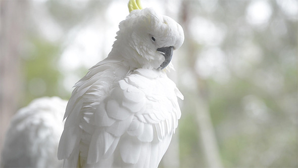 Northern Bald Ibis Preening and Stretching Wings, Eye Level Frontal Mid-Shot