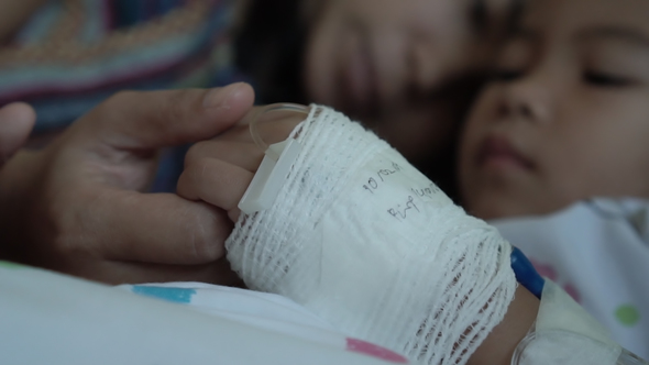 Mother Is Touching Head of Sick Daughter