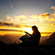 Golden sunset aerial over the sea